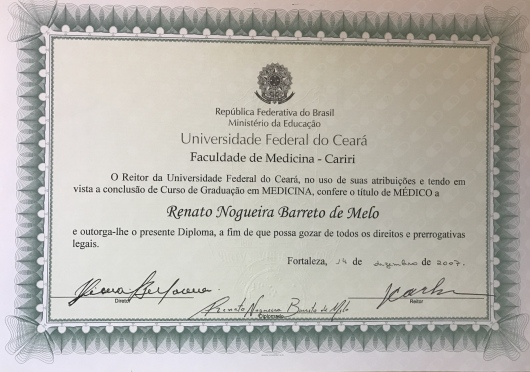 - Graduação em Medicina, Universidade Federal do Ceará, 2007